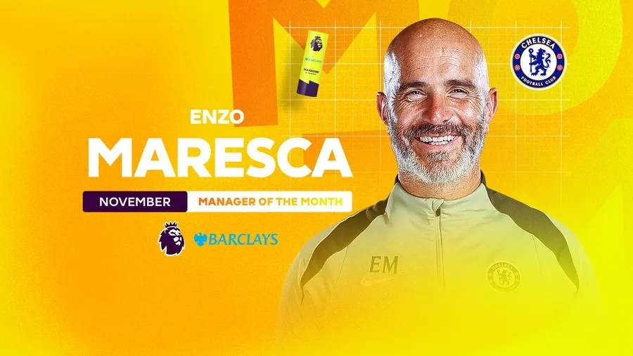 官方:切爾西主帥馬雷斯卡當(dāng)選英超11月最佳教練